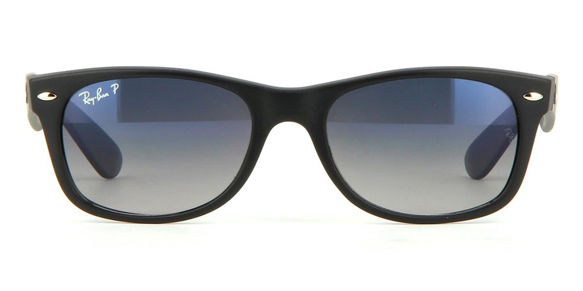 This wayfarer Ray-Ban sunglass comes in a matte black frame with blue gradient grey polarised lenses.