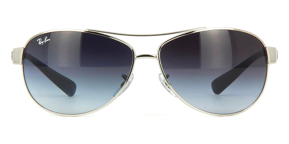 This aviator Ray-Ban sunglass comes in a silver frame with grey gradient lenses.