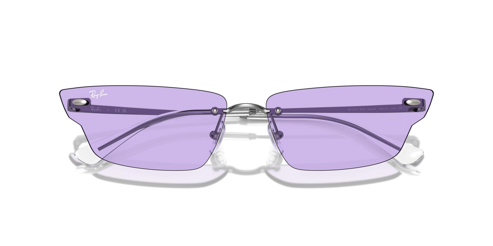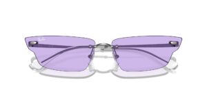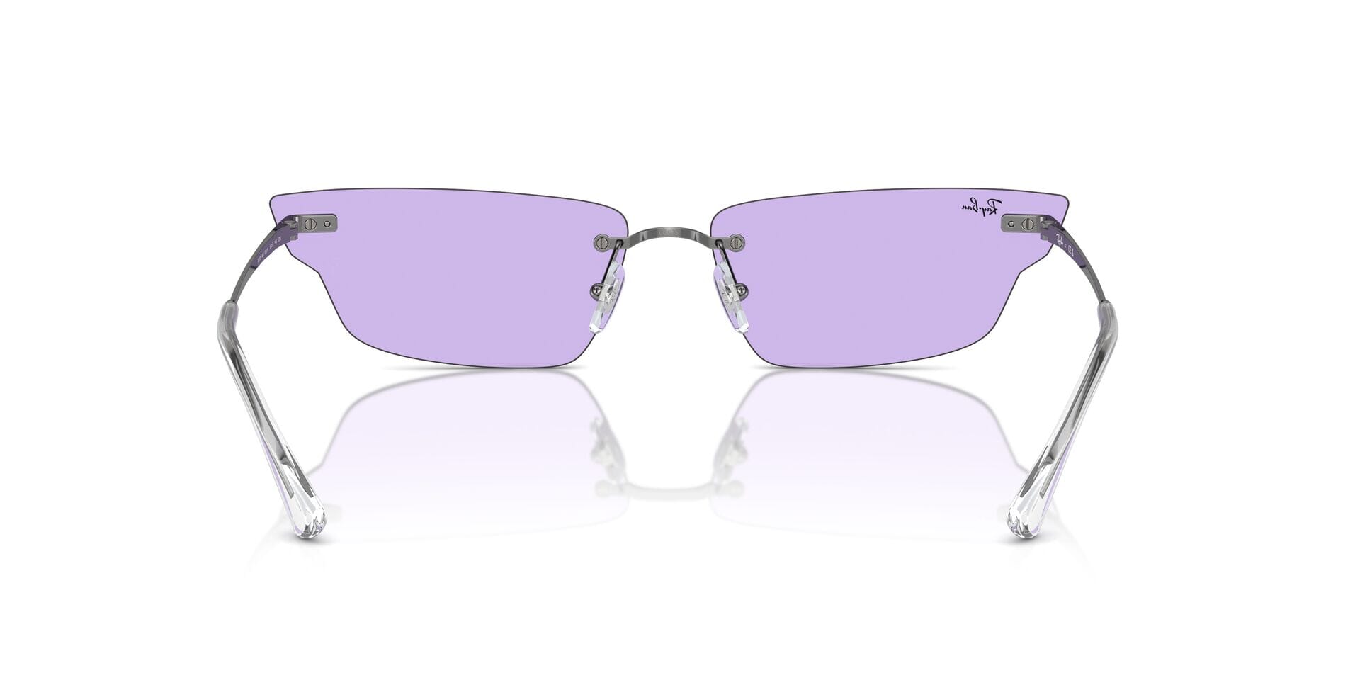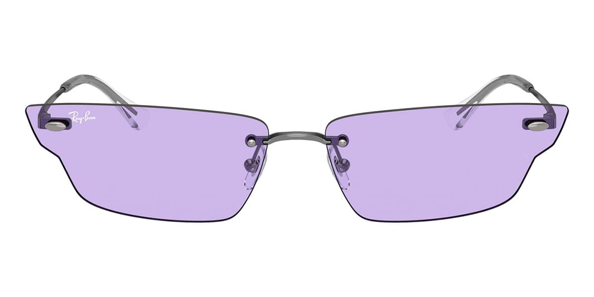 This rectangular Ray-Ban sunglass comes in a gunmetal frame with violet lenses.