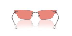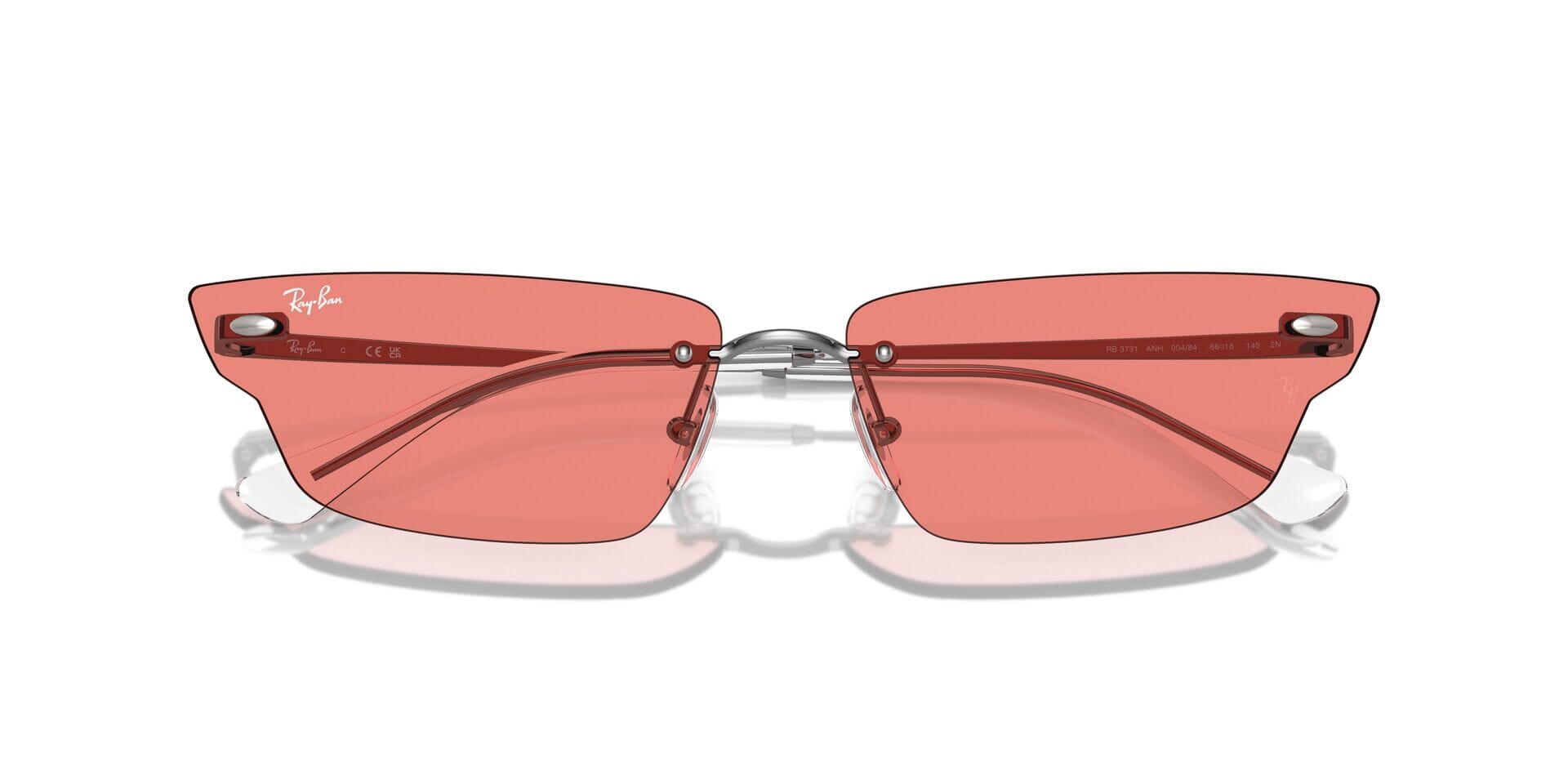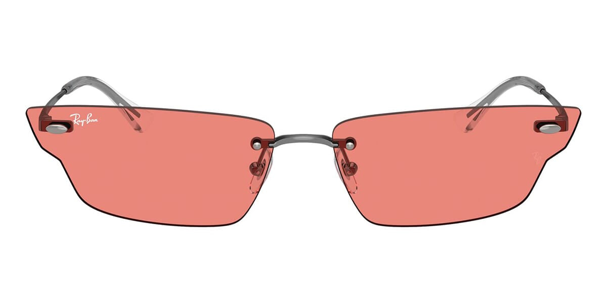 This rectangular Ray-Ban sunglass comes in a gunmetal frame with pink lenses.