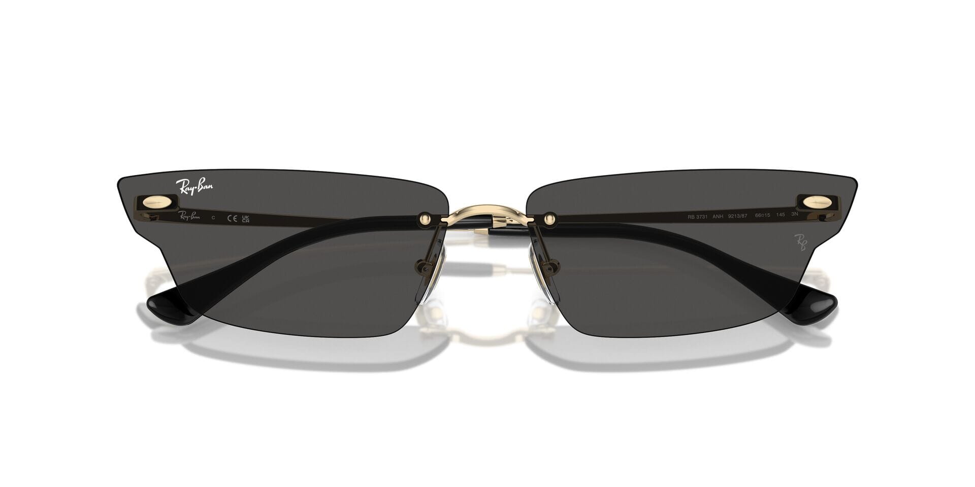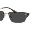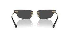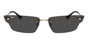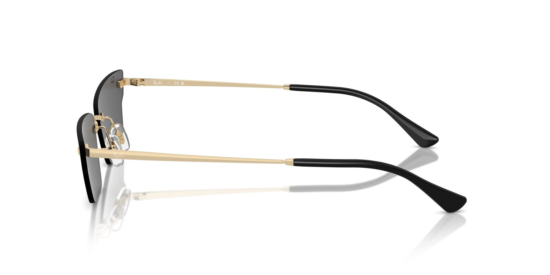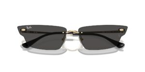 This rectangular Ray-Ban sunglass comes in a light gold frame with dark grey lenses.