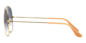 This aviator Ray-Ban sunglass comes in a arista frame with crystal gradient light blue lenses.