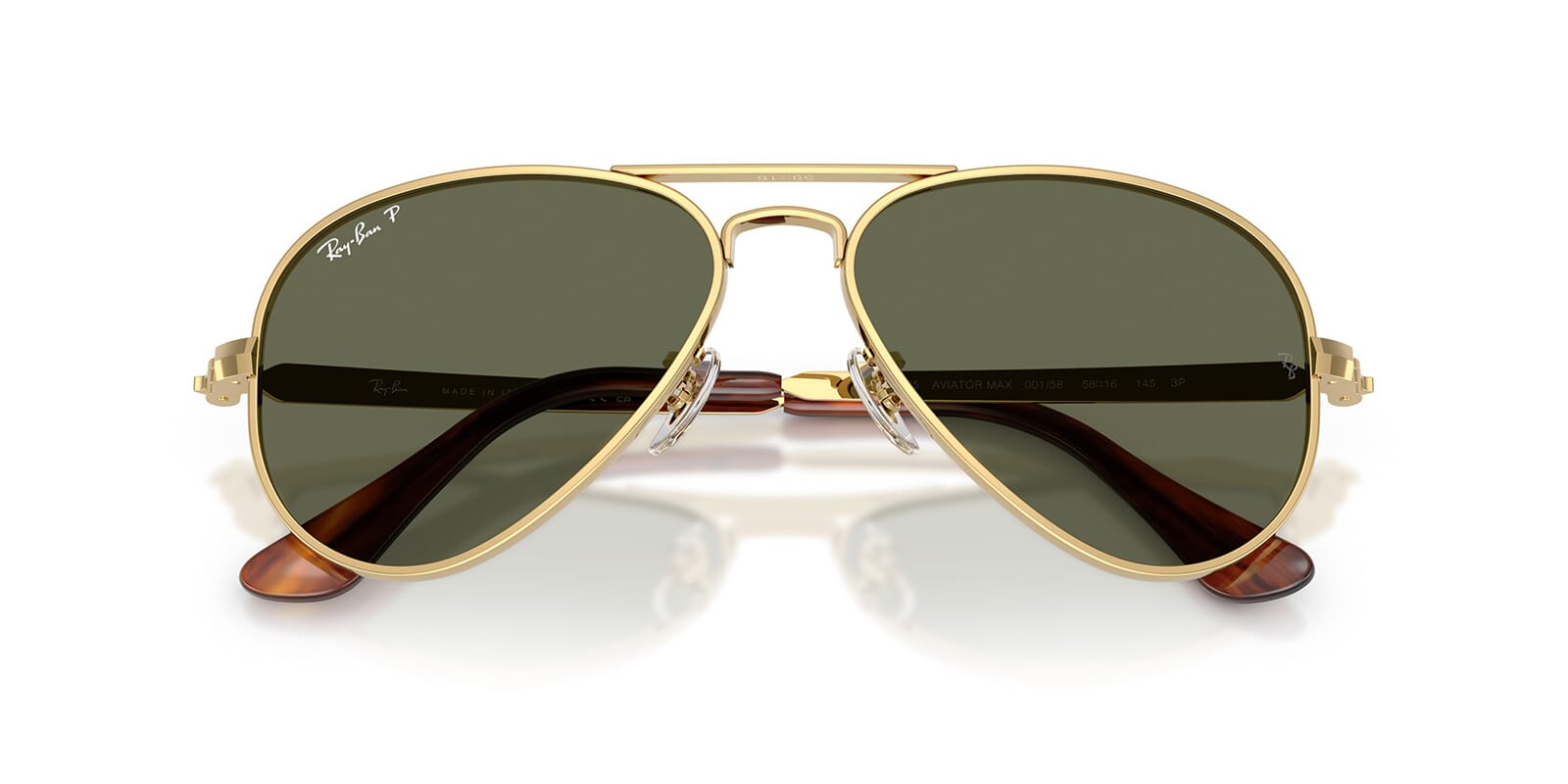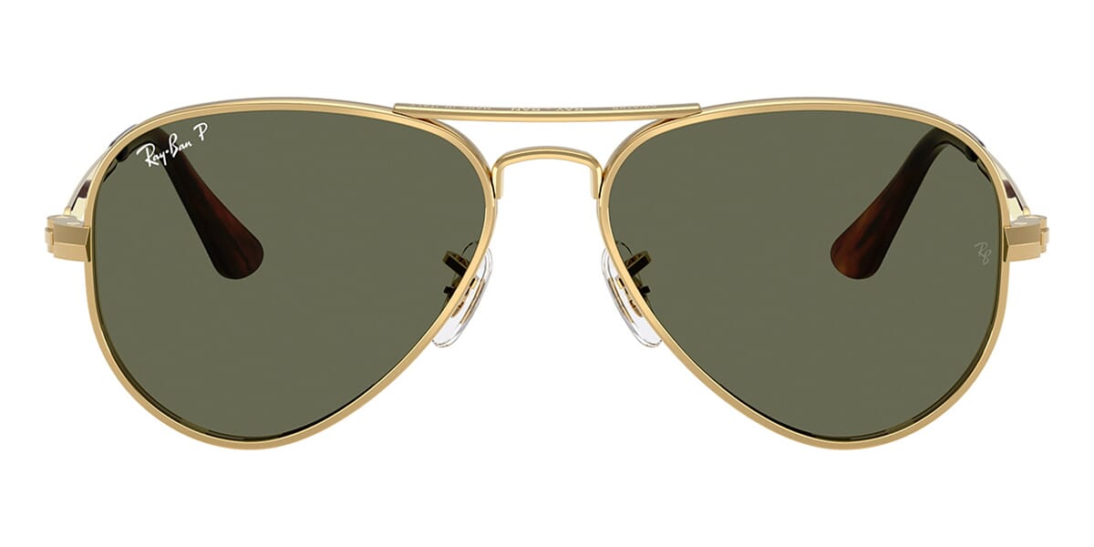 This aviator Ray-Ban sunglass comes in a arista gold frame with green polarised lenses.