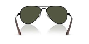 This aviator Ray-Ban sunglass comes in a black frame with green lenses.