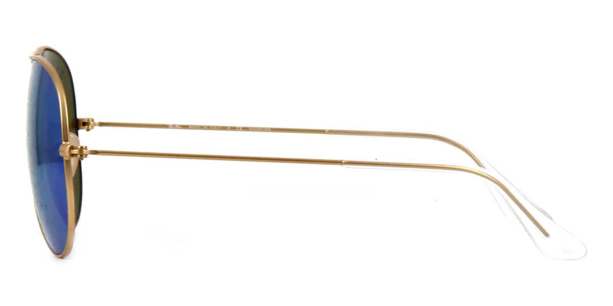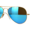This aviator Ray-Ban sunglass comes in a matte gold frame with flash blue mirror lenses.