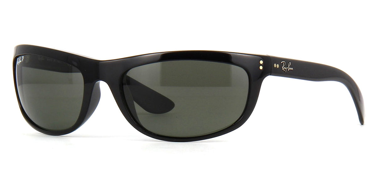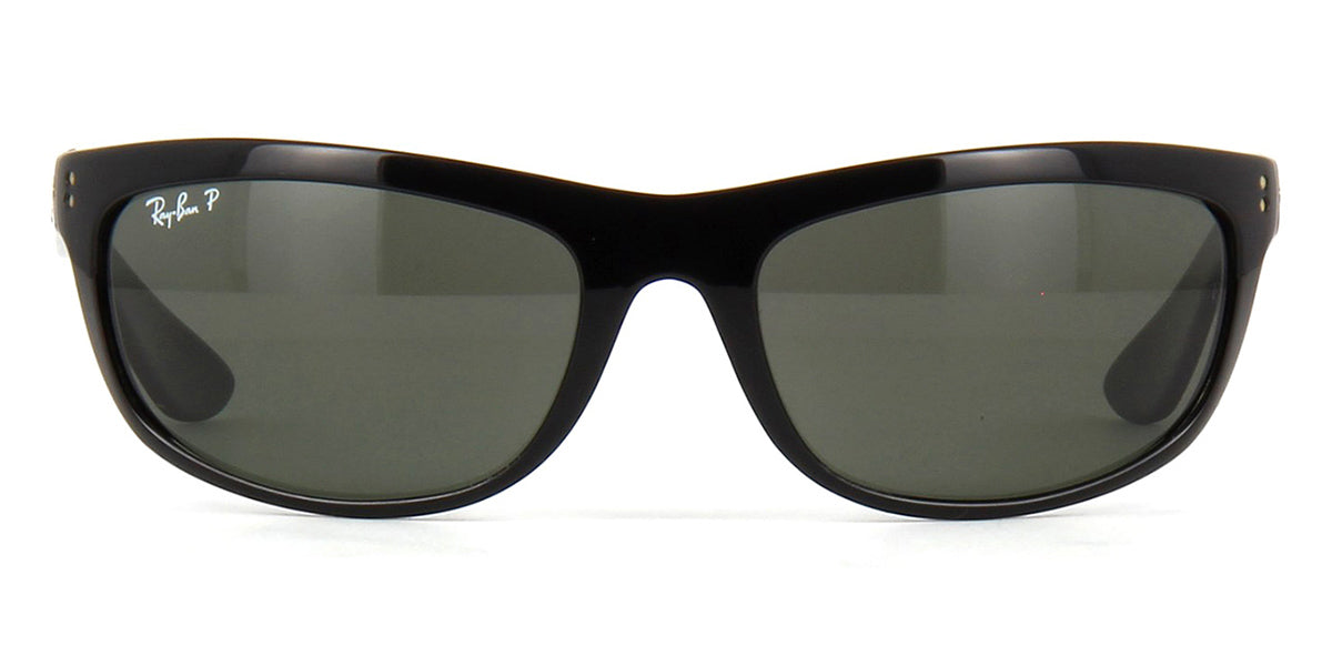 This round Ray-Ban sunglass comes in a black frame with crystal green polarised lenses.