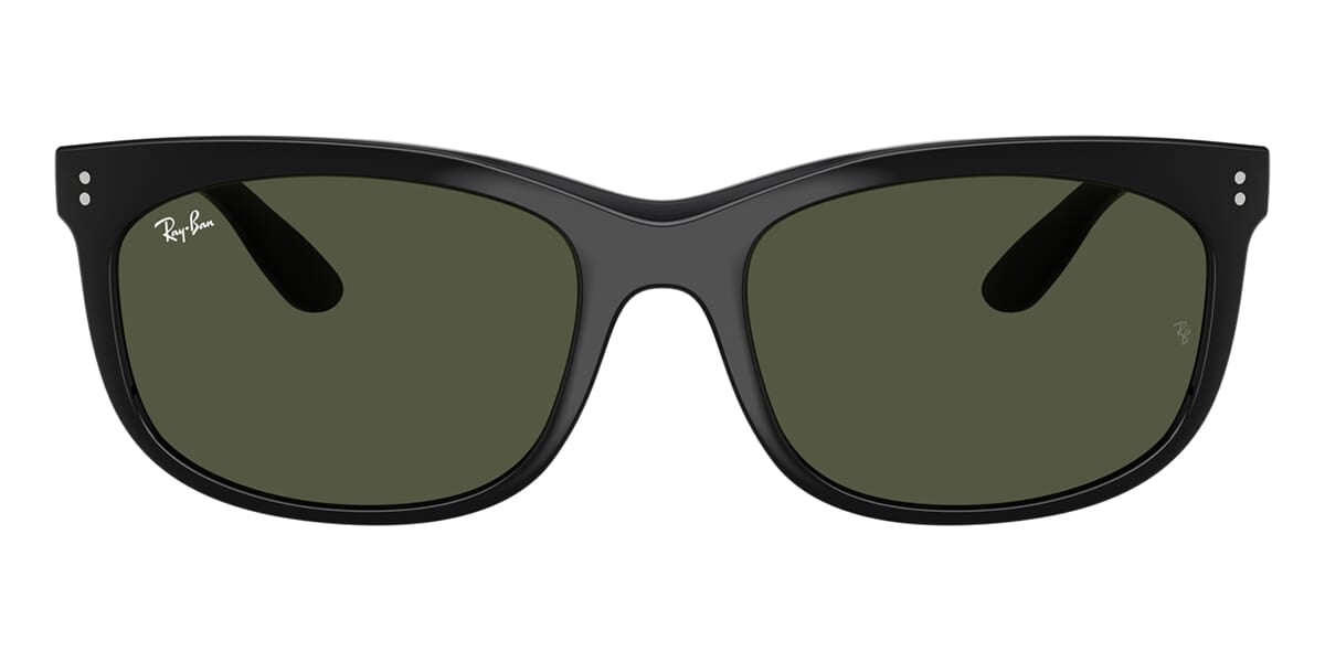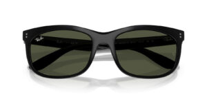 This rectangular Ray-Ban sunglass comes in a black frame with g-15 green lenses.