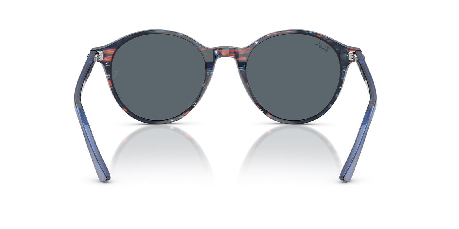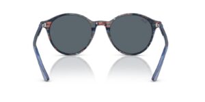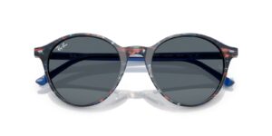 This round Ray-Ban sunglass comes in a transparent shade fantasy blue frame with blue lenses.