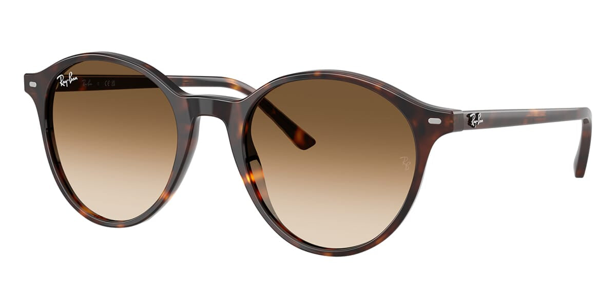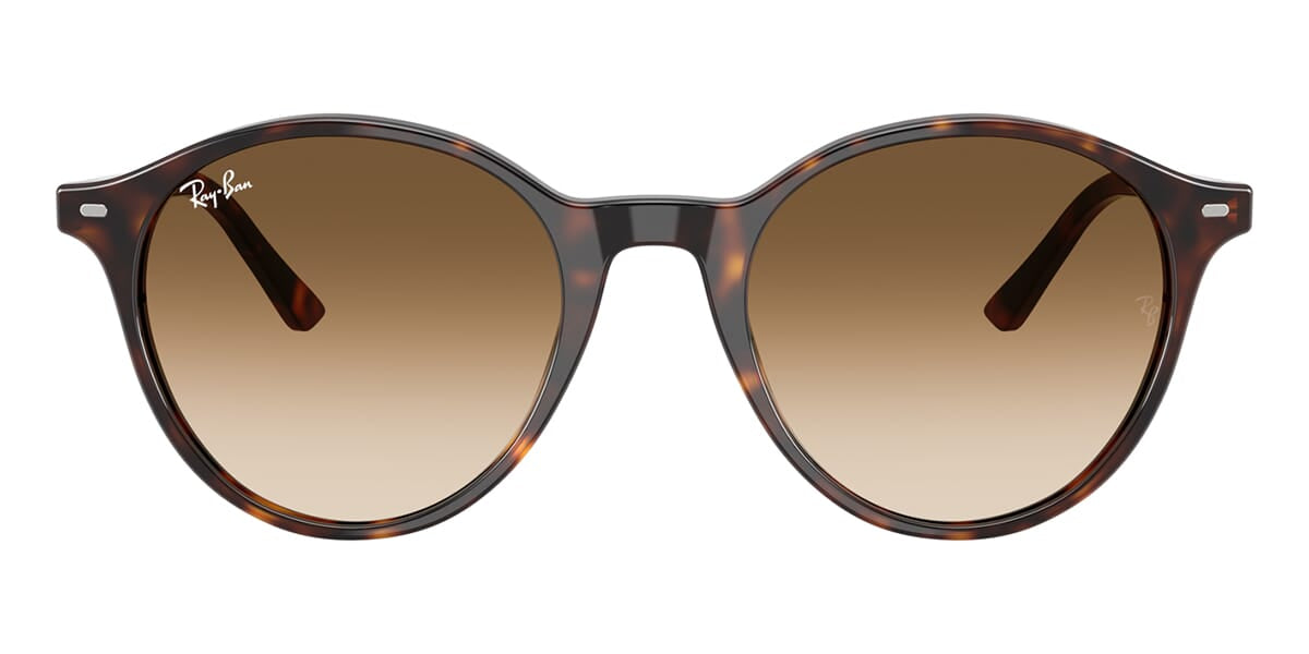 This round Ray-Ban sunglass comes in a havana frame with clear brown gradient lenses.