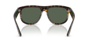 This square Ray-Ban sunglass comes in a dark havana frame with dark green lenses.