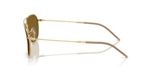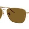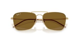 This square Ray-Ban sunglass comes in a arista gold frame with dark brown polarised lenses.
