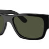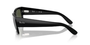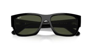 This rectangular Ray-Ban sunglass comes in a black frame with green lenses.