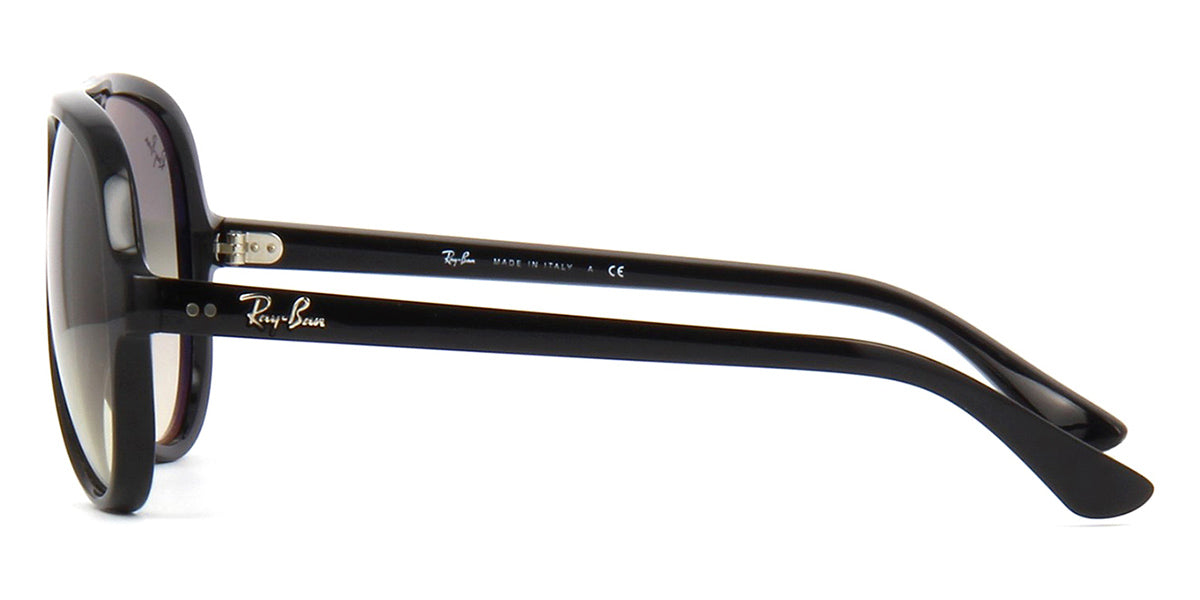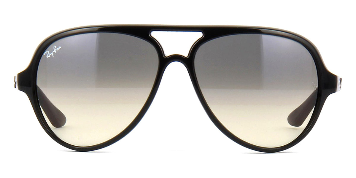 This aviator Ray-Ban sunglass comes in a shiny black frame with grey gradient lenses.