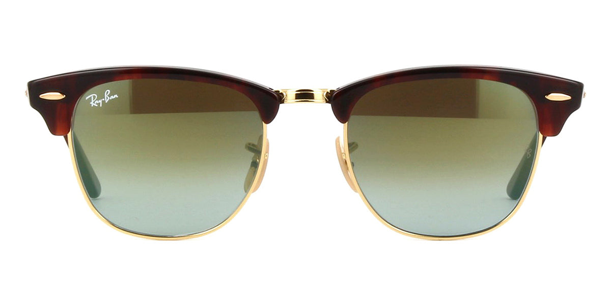 This round Ray-Ban sunglass comes in a shiny havana frame with brown gradient with green flash mirror lenses.