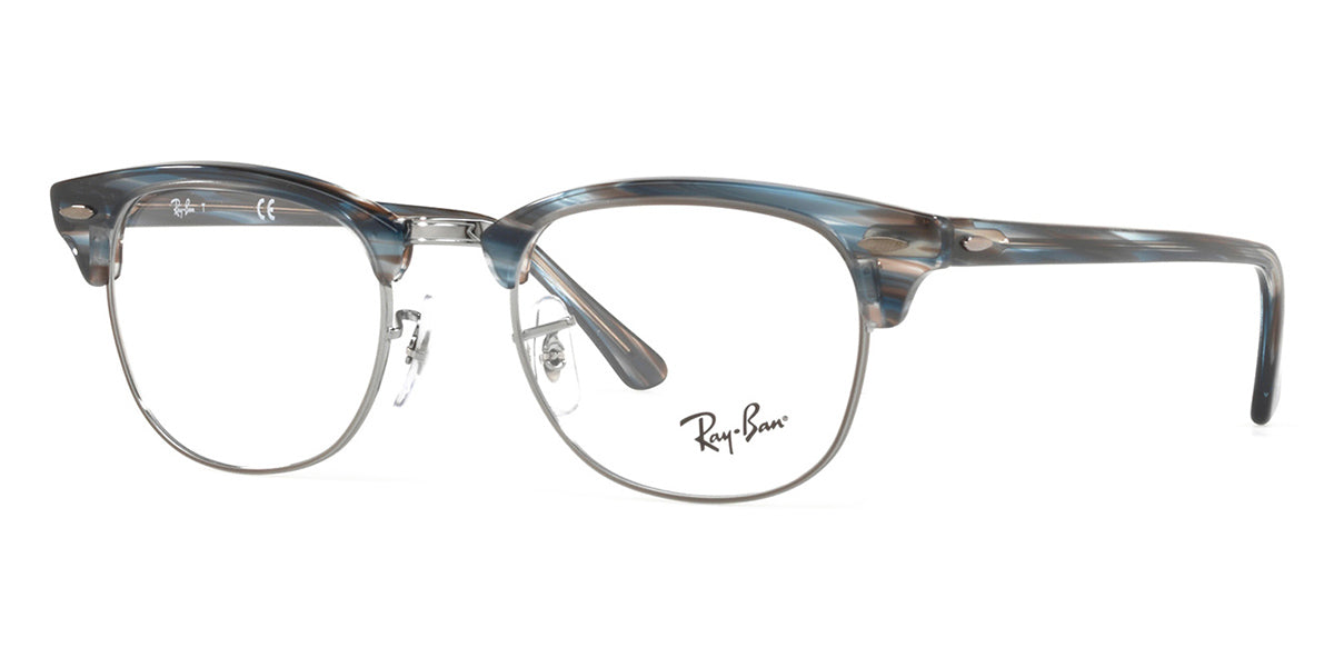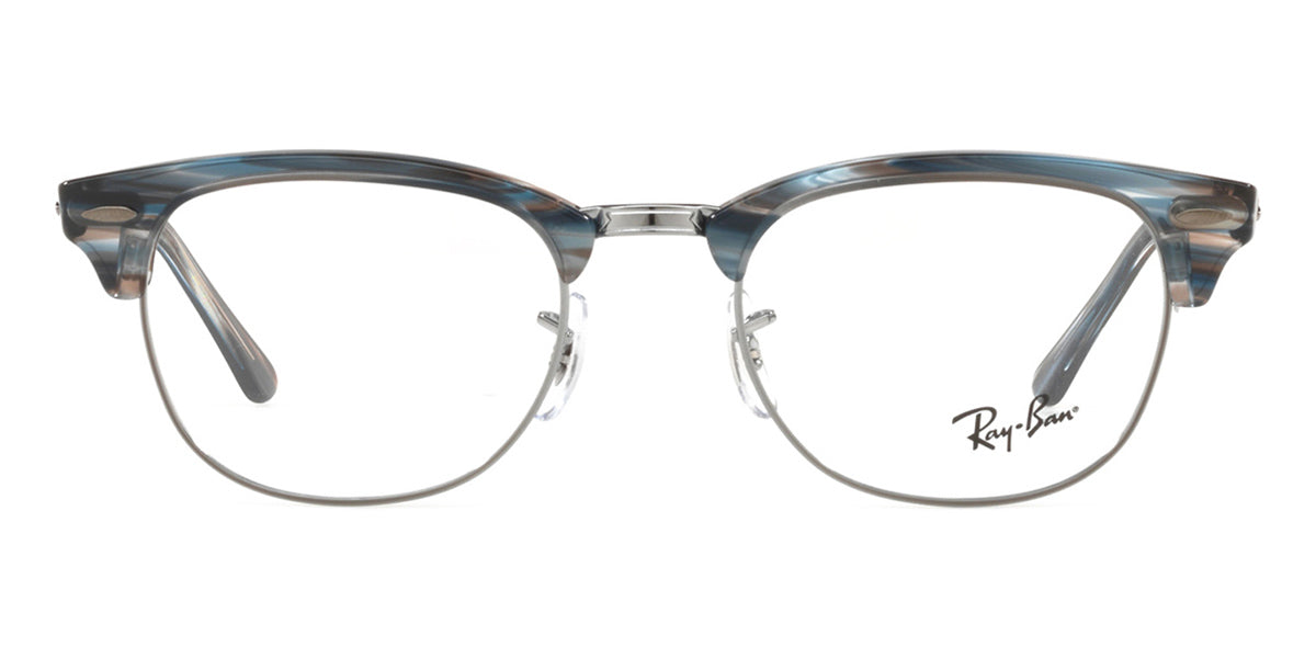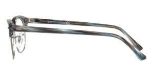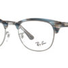 This square Ray-Ban optical comes in a blue and grey stripped frame.