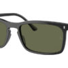 This square Ray-Ban sunglass comes in a black on gold frame with green lenses.