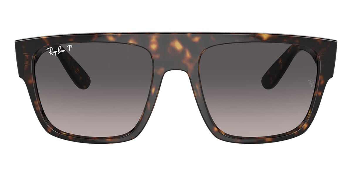 This square Ray-Ban sunglass comes in a havana frame with grey gradient polarised lenses.