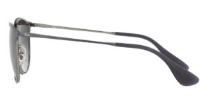 This round Ray-Ban sunglass comes in a shot grey metallic frame with grey gradient lenses.