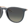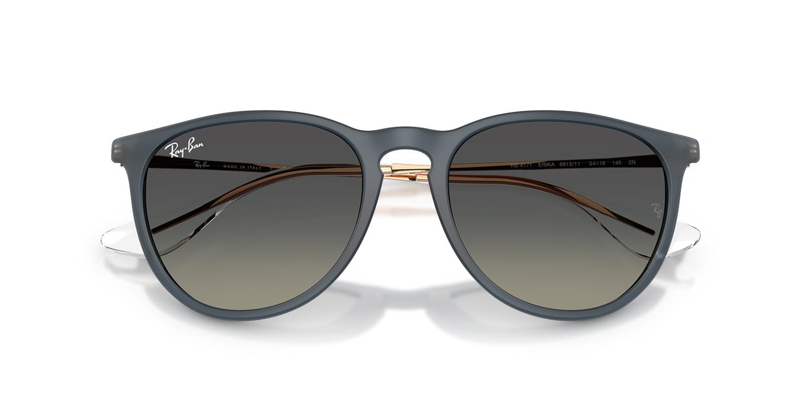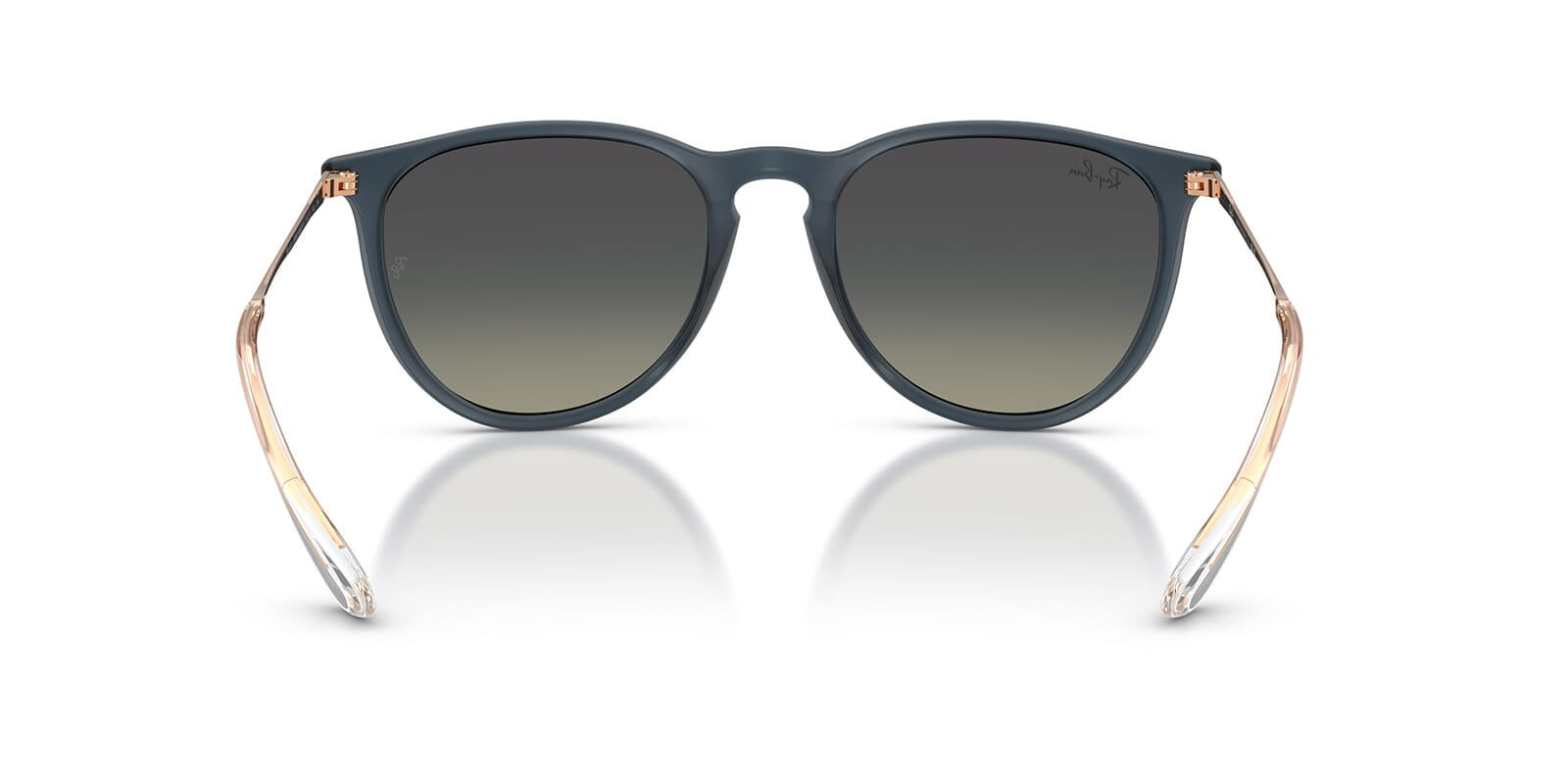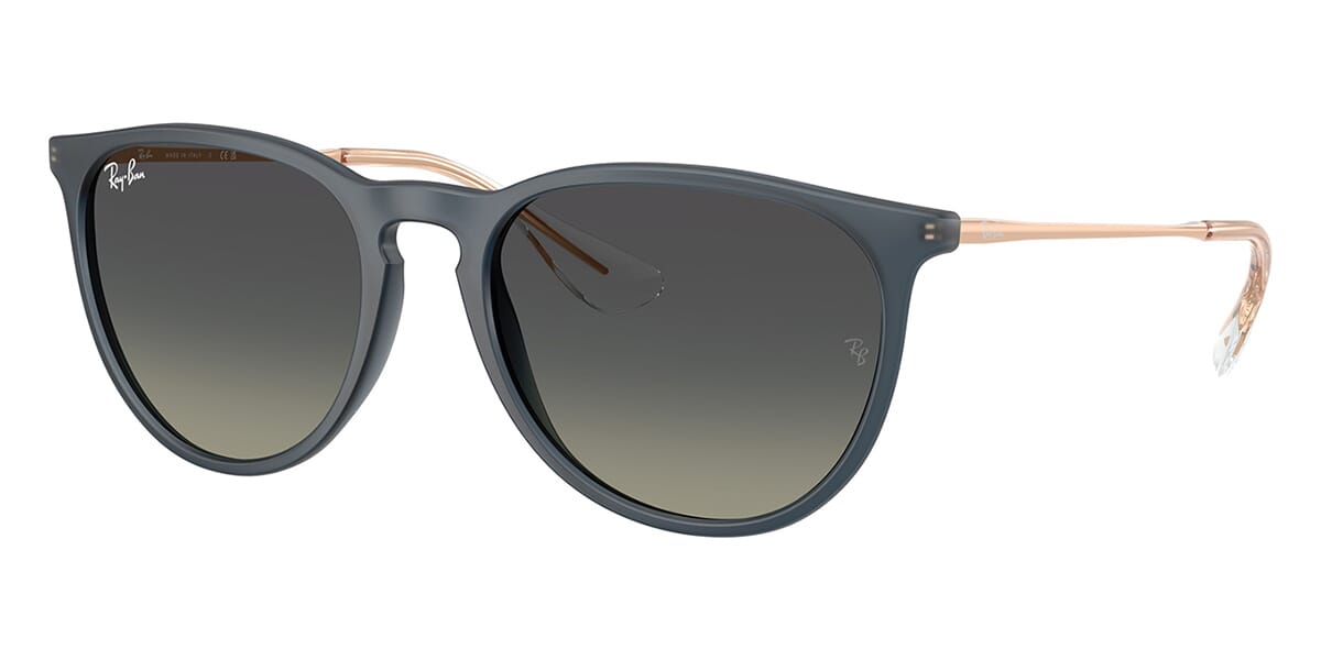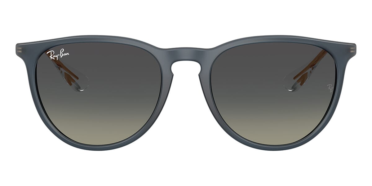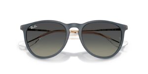 This round Ray-Ban sunglass comes in a rubber blue frame with grey gradient lenses.