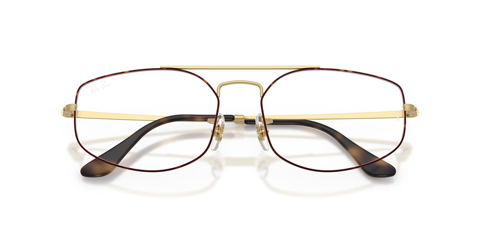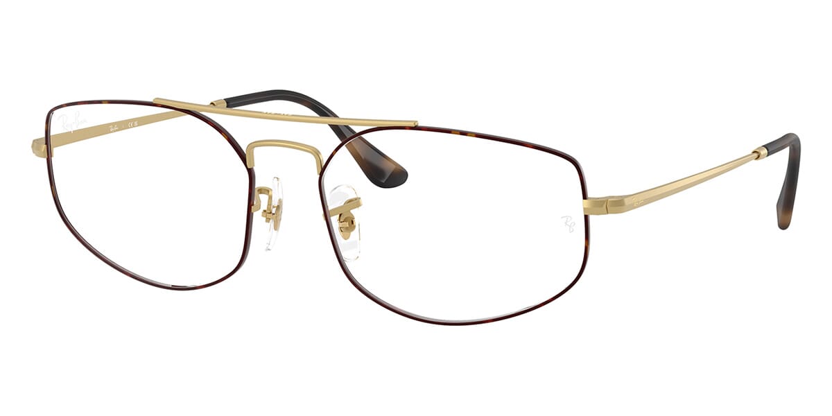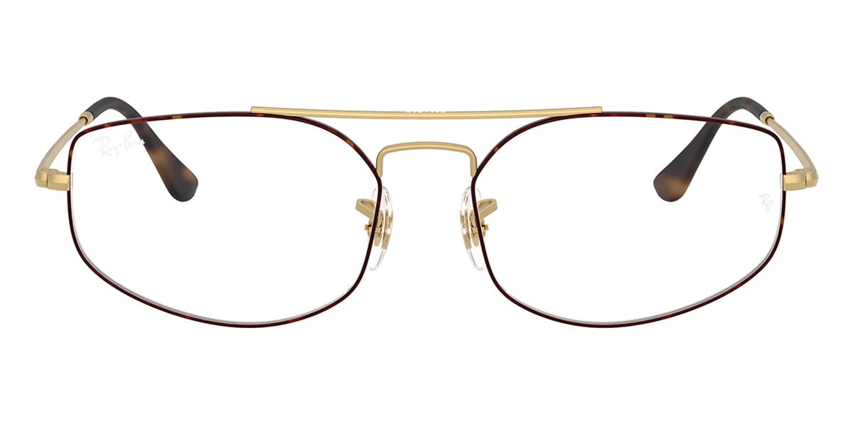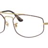 This rectangular Ray-Ban optical comes in a matte havana on matte arista gold frame.
