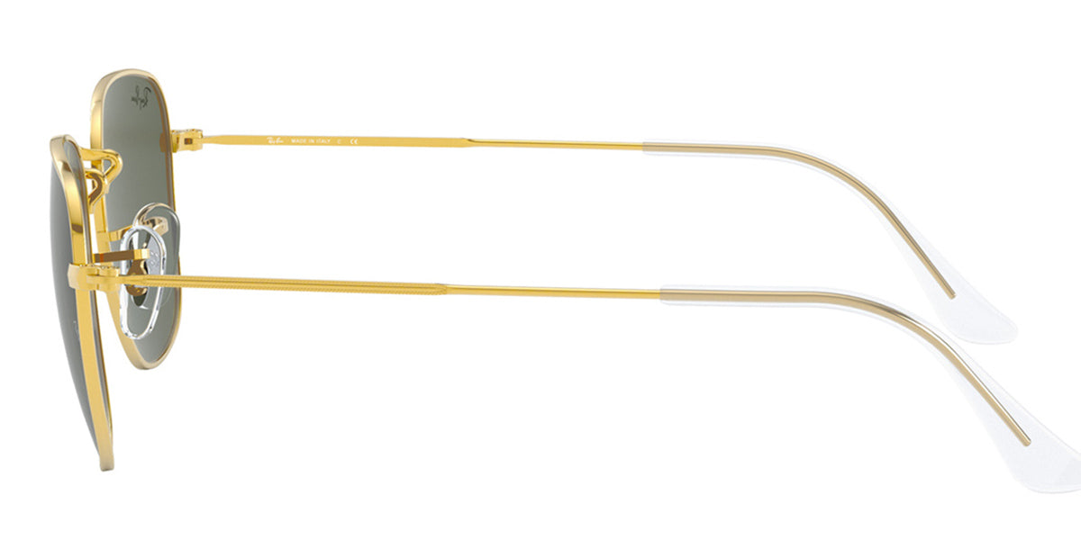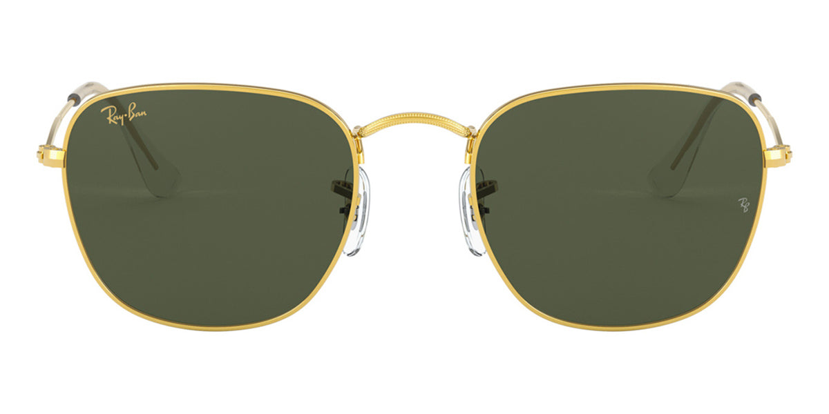 This square Ray-Ban sunglass comes in a legend gold frame with green lenses.