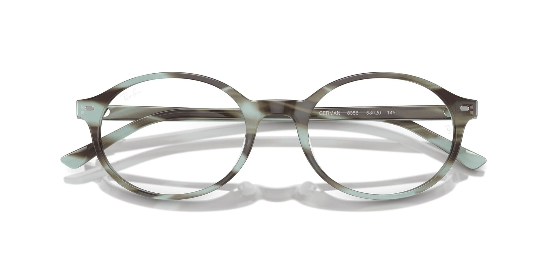 This round Ray-Ban optical comes in a striped green frame.