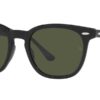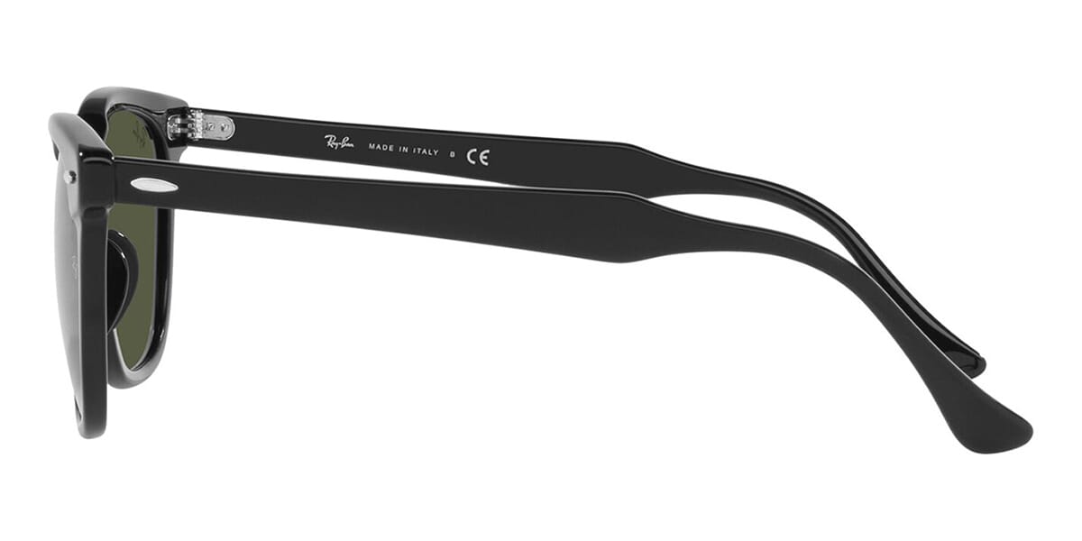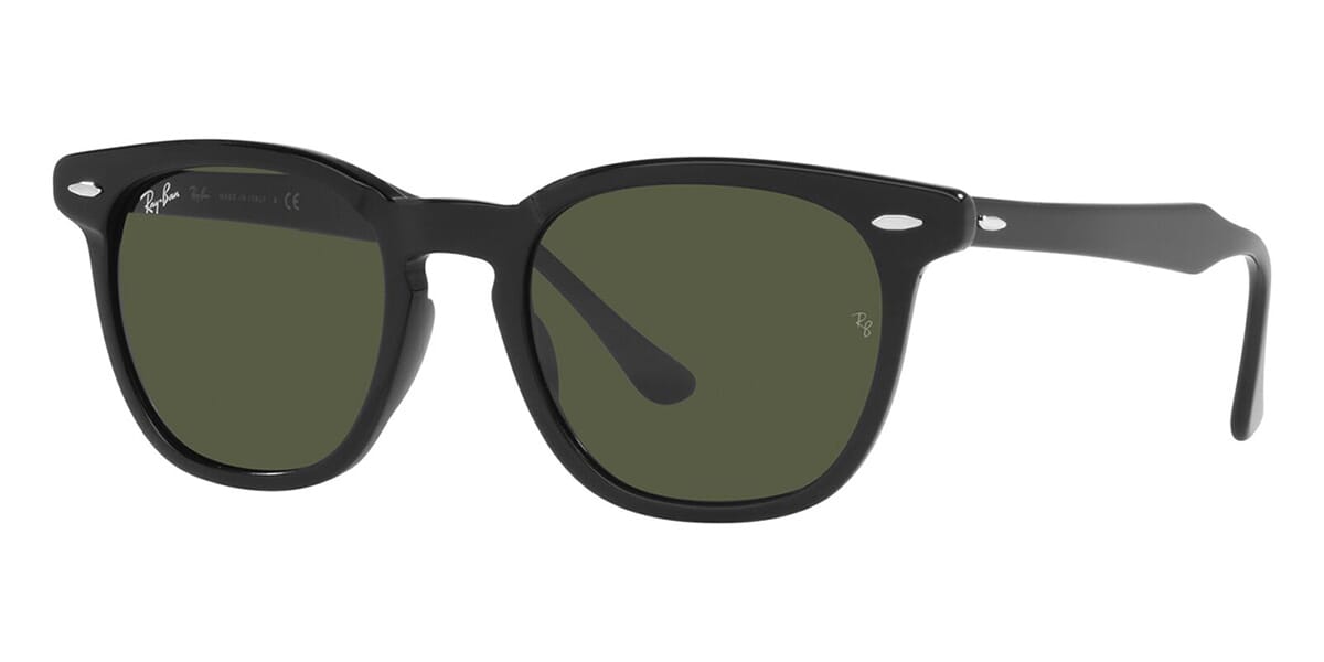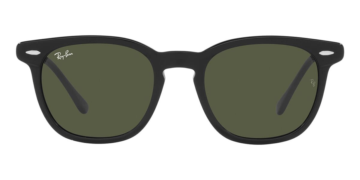 This square Ray-Ban sunglass comes in a black frame with green lenses.
