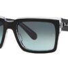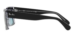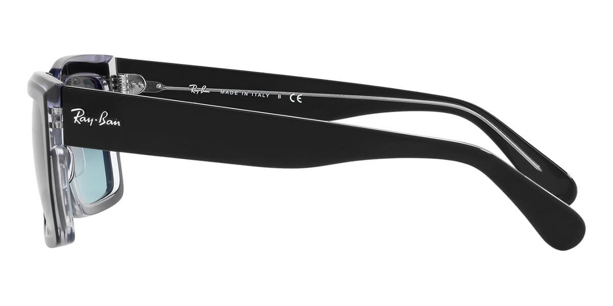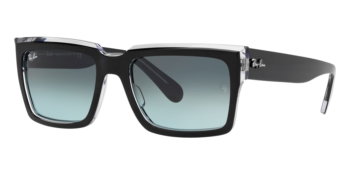 This square Ray-Ban sunglass comes in a black on crystal frame with blue gradient lenses.