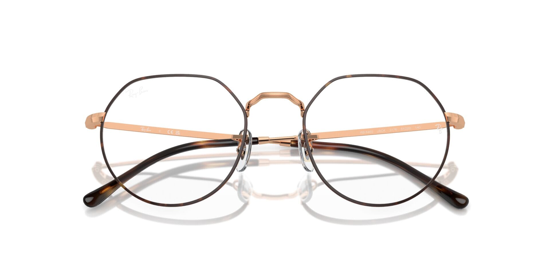 This round Ray-Ban optical comes in a havana on rose gold frame.