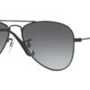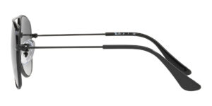 This aviator Ray-Ban sunglass comes in a shiny black frame with light grey gradient dark grey lenses.