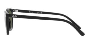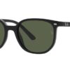 This square Ray-Ban sunglass comes in a black frame with dark green lenses.