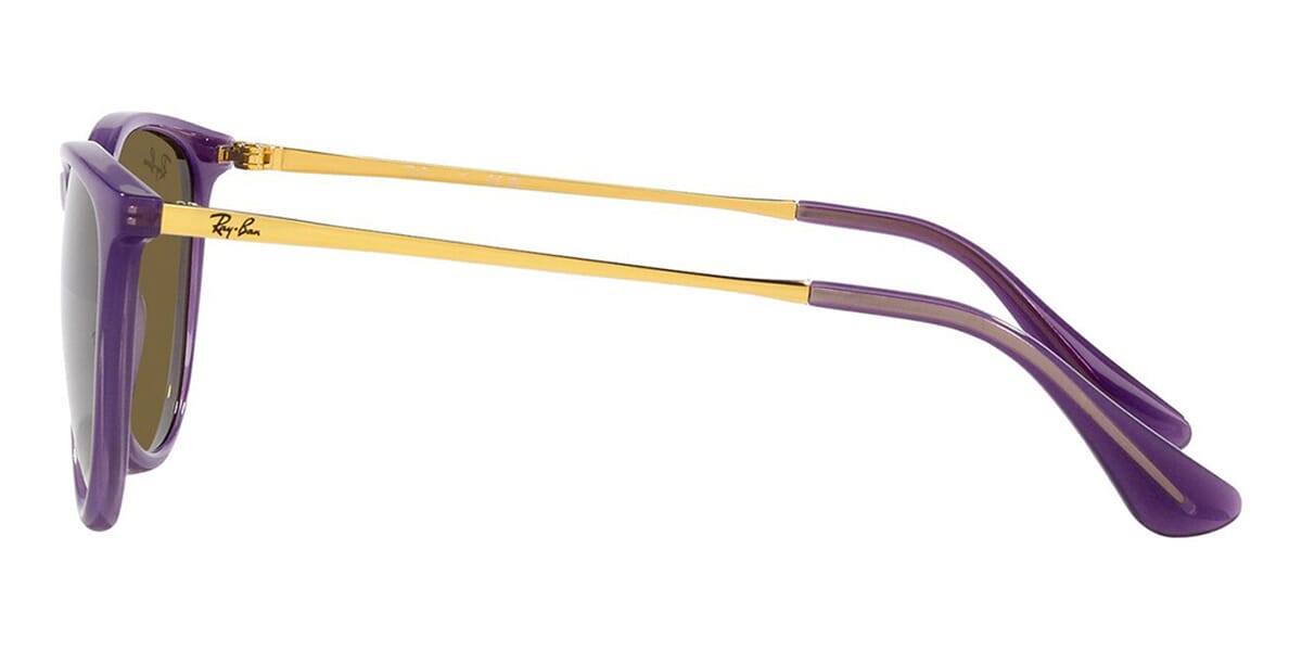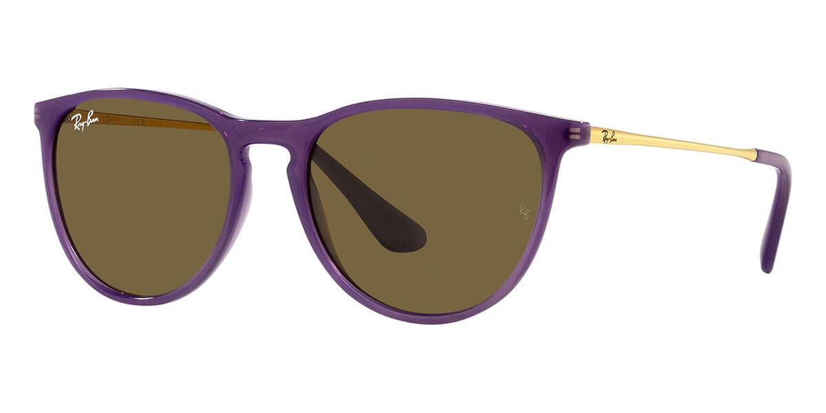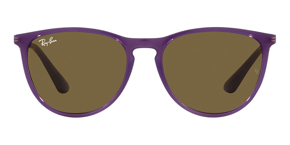 This round Ray-Ban sunglass comes in a opal violet frame with dark brown lenses.
