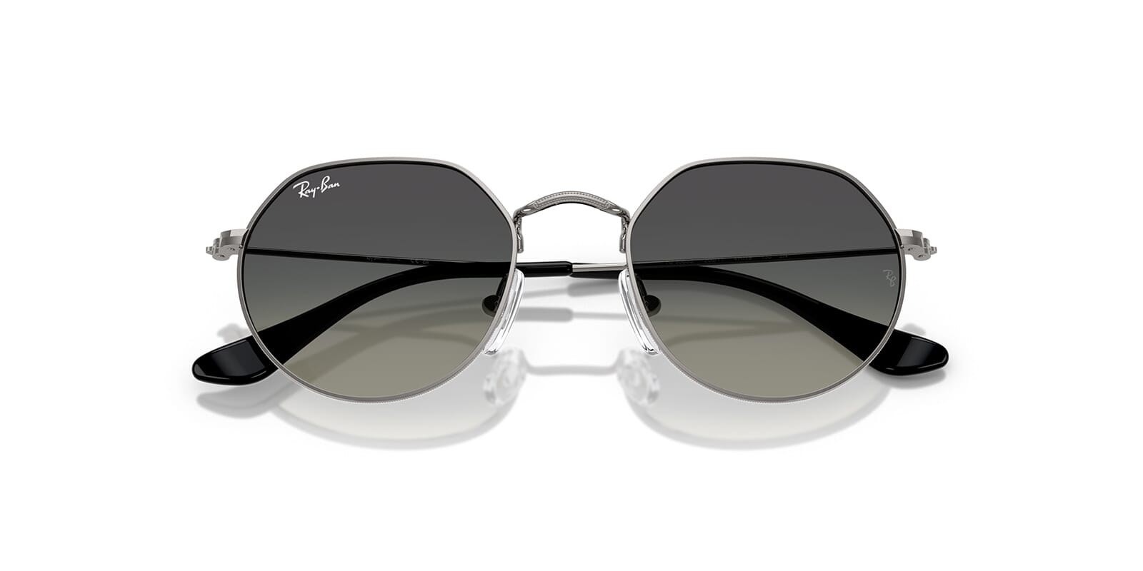 This round Ray-Ban sunglass comes in a gunmetal frame with grey gradient lenses.