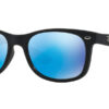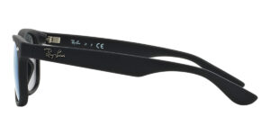 This square Ray-Ban sunglass comes in a matte black frame with blue mirror lenses.