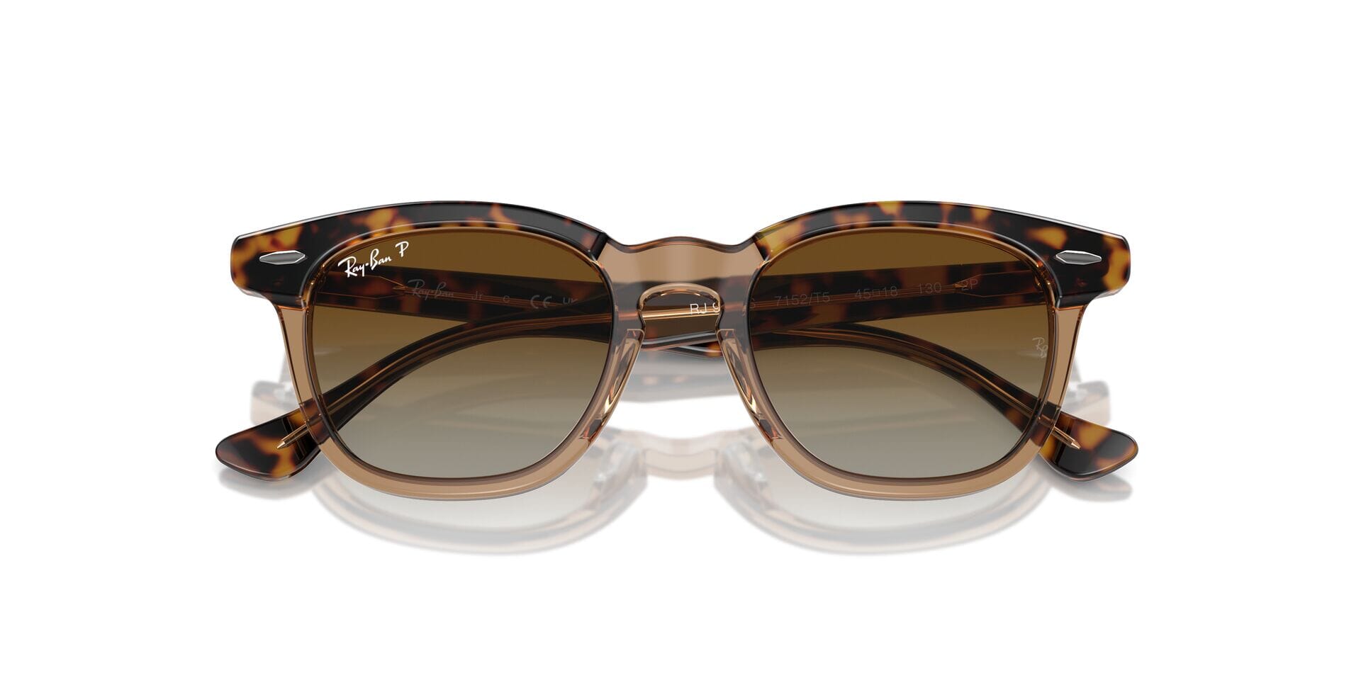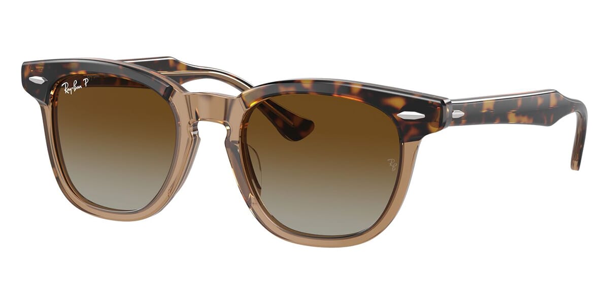 This square Ray-Ban sunglass comes in a havana on crystal frame with brown gradient polarised lenses.