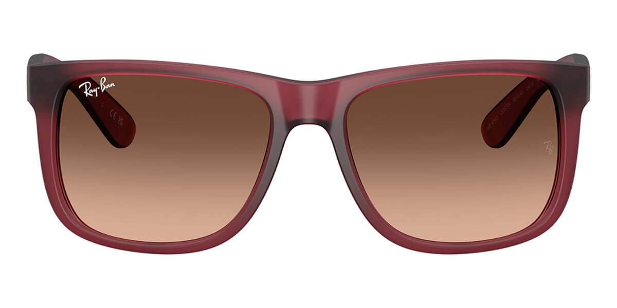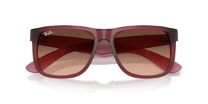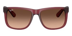 This square Ray-Ban sunglass comes in a rubber violet frame with brown gradient lenses.