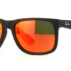 This rectangular Ray-Ban sunglass comes in a black rubber frame with brown mirror orange lenses.