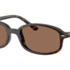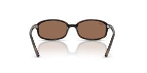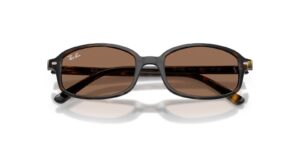 This rectangular Ray-Ban sunglass comes in a havana frame with dark brown lenses.