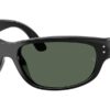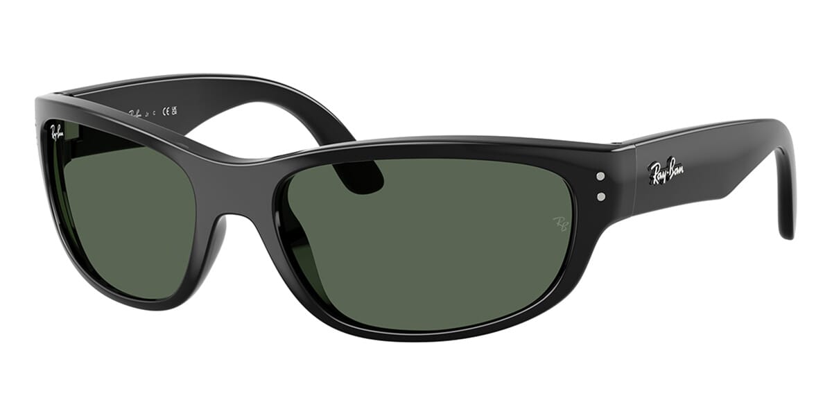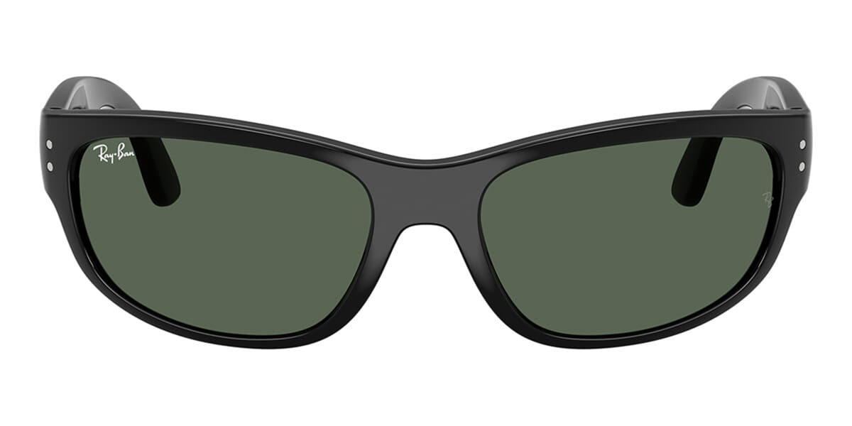 This rectangular Ray-Ban sunglass comes in a black frame with dark green lenses.