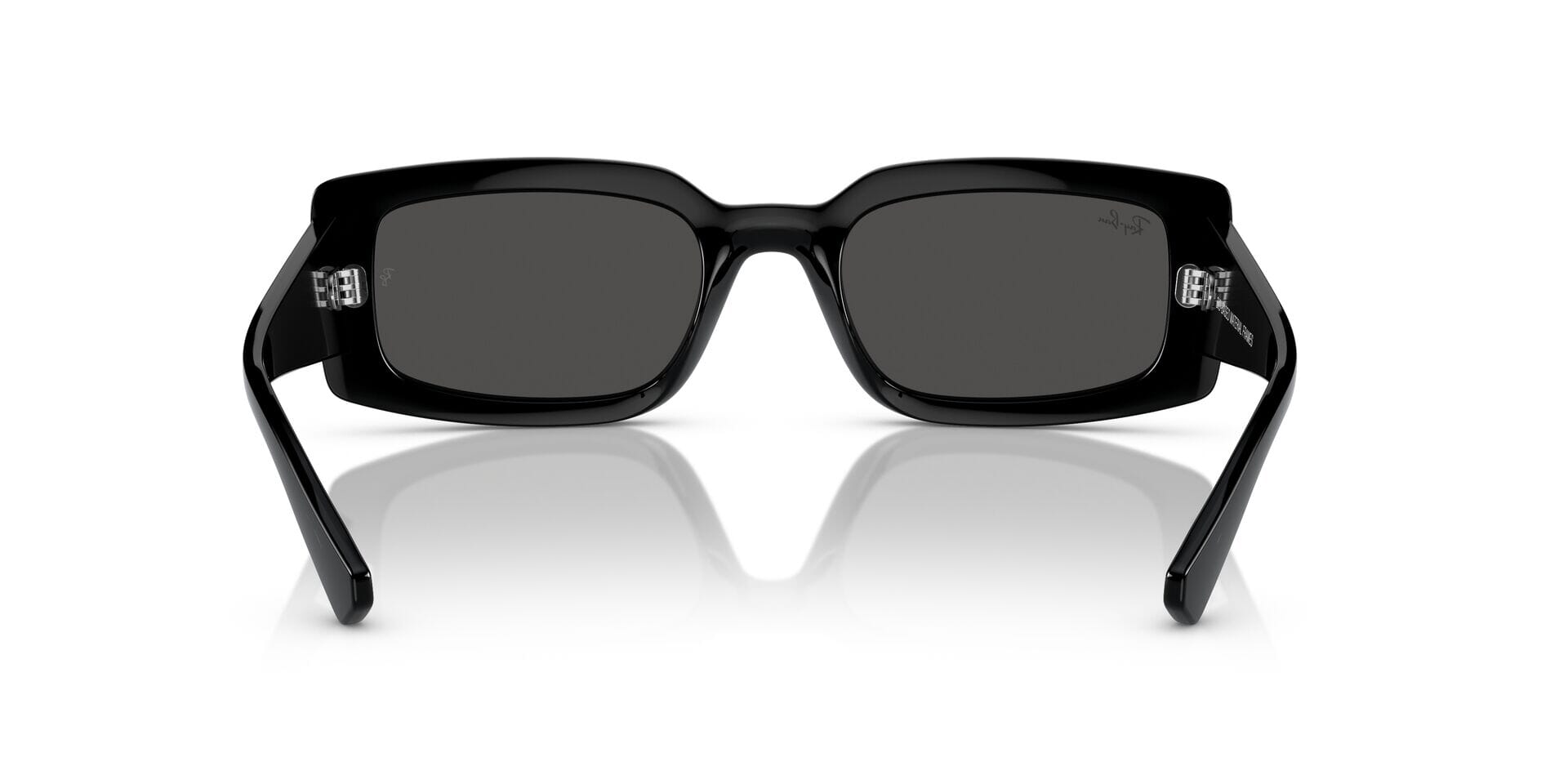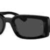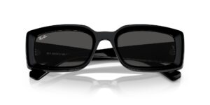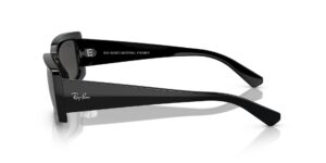 This rectangular Ray-Ban sunglass comes in a black frame with dark grey lenses.