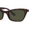 This cat eye Ray-Ban sunglass comes in a havana frame with green lenses.