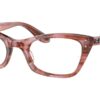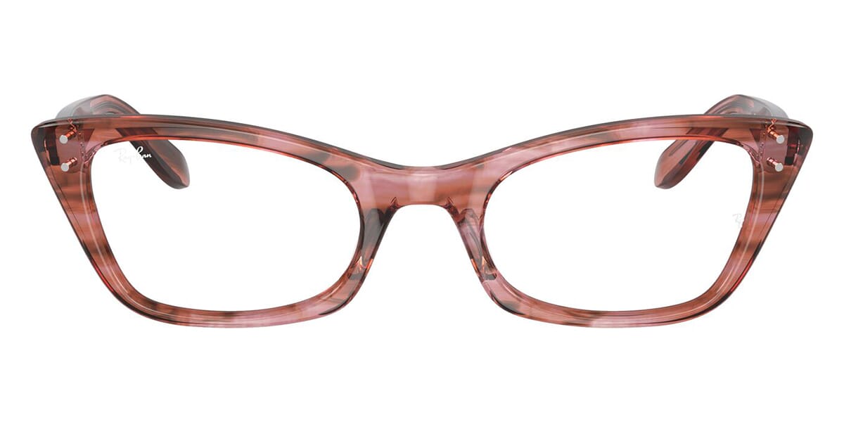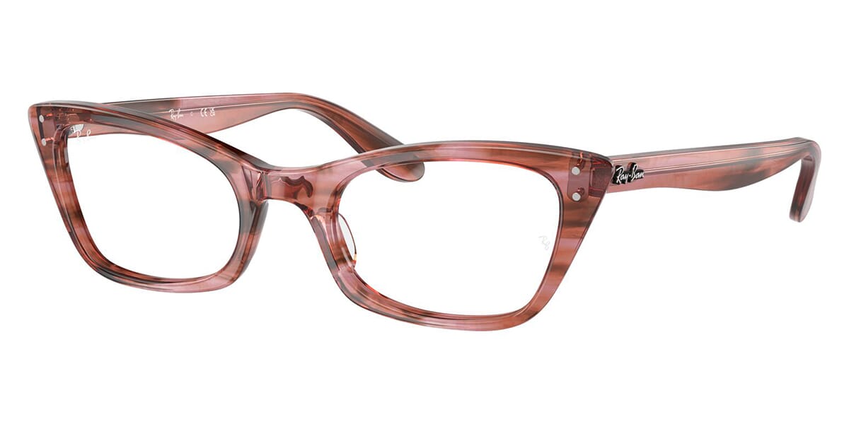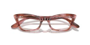 This cat eye Ray-Ban optical comes in a striped pink frame.