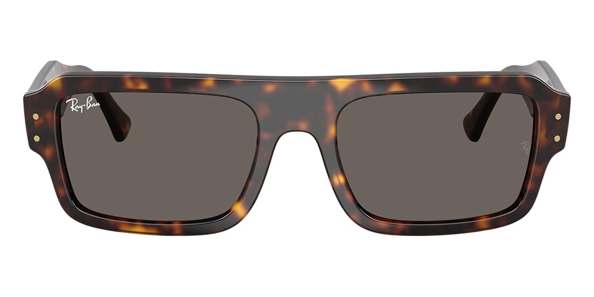 This rectangular Ray-Ban sunglass comes in a havana frame with dark grey lenses.