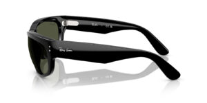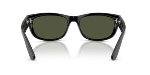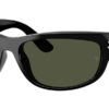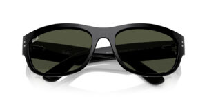 This rectangular Ray-Ban sunglass comes in a black frame with g-15 green lenses.