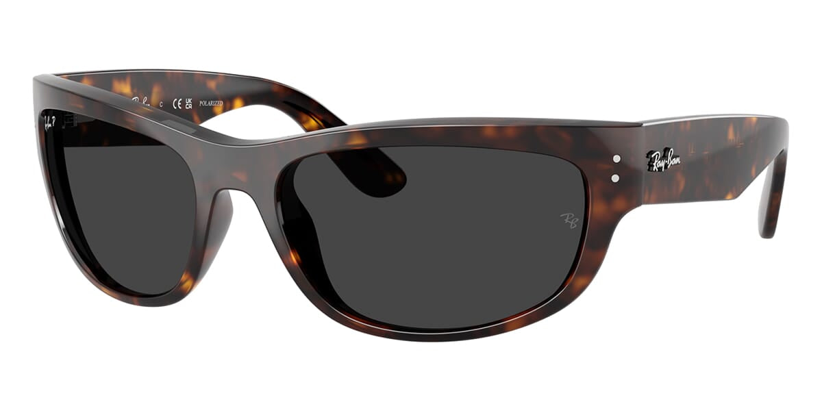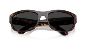 This rectangular Ray-Ban sunglass comes in a havana frame with dark grey polarised lenses.