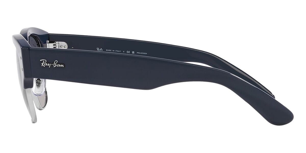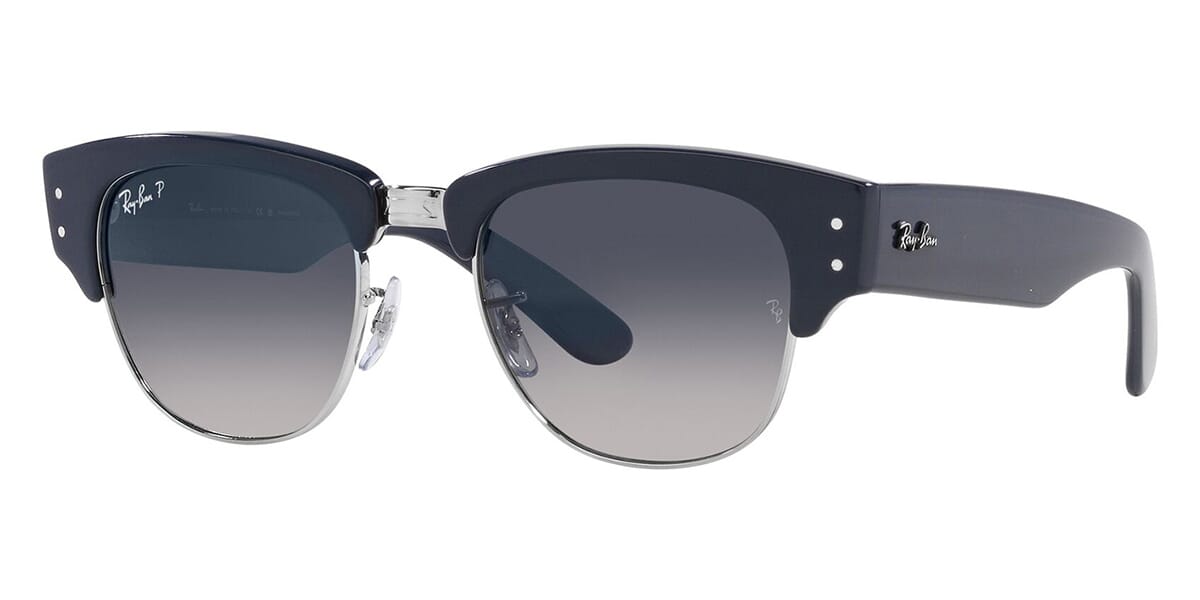 This square Ray-Ban sunglass comes in a blue on silver frame with blue gradient polarised lenses.