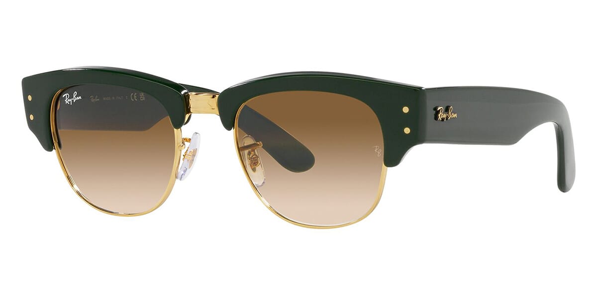 This square Ray-Ban sunglass comes in a green on arista frame with light brown gradient lenses.