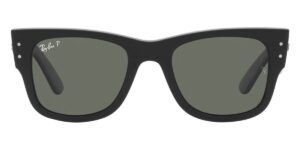 This square Ray-Ban sunglass comes in a black frame with green polarised lenses.