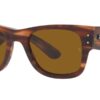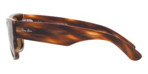 This square Ray-Ban sunglass comes in a striped havana frame with brown lenses.