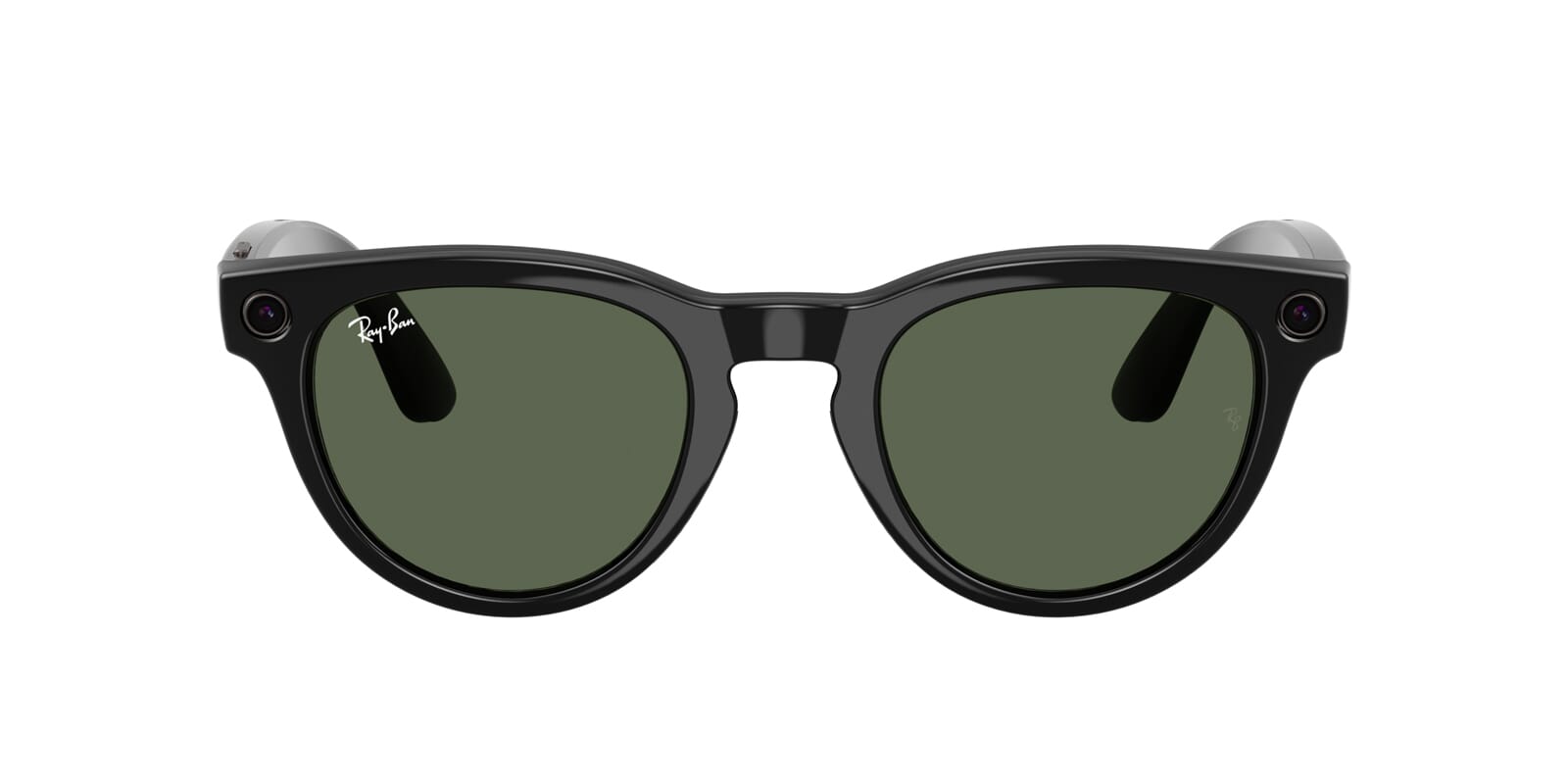 This round Ray-Ban sunglass comes in a shiny black frame with g15 green lenses.